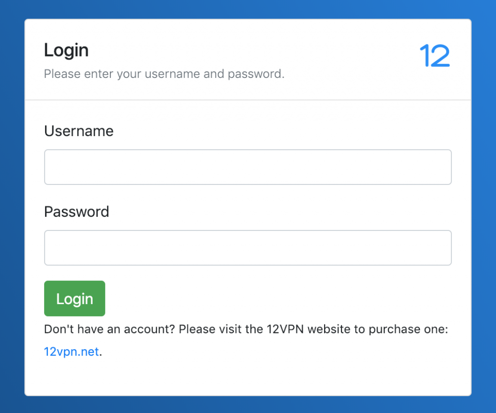The login screen for the 12VPX Chrome extension will pop-up. Please enter your 12VPX username and password, then click Login.